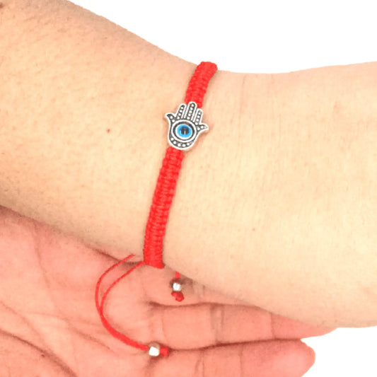 Pulsera Mano de Fátima con Ojo Turco - Pulsera Hilo Rojo - Pulsera Hamsa