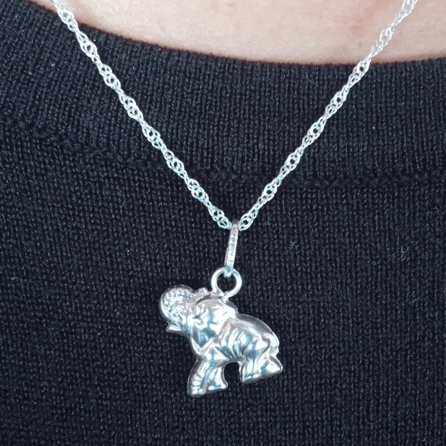 Conéctate con la energía ancestral de la fortuna y la protección con este collar elefante de plata, amuleto de protección y abundancia un símbolo de sabiduría, prosperidad y equilibrio espiritual.